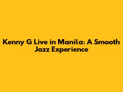 Kenny G Live In Manila: A Smooth Jazz Experience
