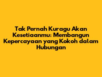 Kesetiaan adalah fondasi utama dari setiap hubungan yang sehat dan langgeng, baik itu dalam percintaan, persahabatan, maupun hubungan profesional. Ungkapan "tak pernah kuragu akan kesetiaanmu" adalah janji yang mendalam, sebuah komitmen untuk mempercayai dan mendukung orang lain tanpa syarat. Namun, membangun dan memelihara kepercayaan yang kokoh memerlukan usaha, konsistensi, dan komunikasi yang jujur. Mari kita selami lebih dalam tentang bagaimana membangun kesetiaan dan kepercayaan yang tak tergoyahkan dalam hubungan.