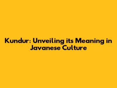 What Does "Kundur" Really Mean in Javanese?