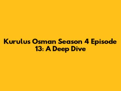 Hey guys! Let's dive deep into Kurulus Osman Season 4 Episode 13. This episode was a rollercoaster, wasn't it? Full of twists, turns, and enough drama to keep us all on the edge of our seats. We're going to break down all the key moments, character developments, and plot advancements that made this episode a standout. Whether you're a long-time fan or just getting into the series, buckle up because we're about to dissect everything that made this episode so epic. From Osman Bey's strategic maneuvers to the simmering tensions within the Kayı tribe, there’s so much to unpack. So, grab your popcorn, and let's get started!