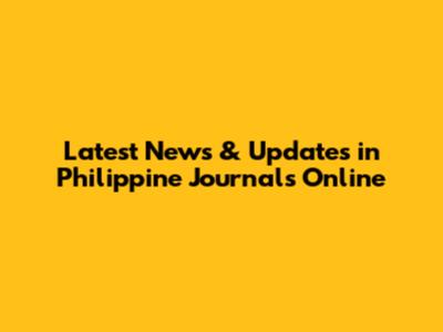 Latest News & Updates In Philippine Journals Online