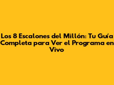 Los 8 Escalones Del Millón: Guía Para Ver El Programa En Vivo