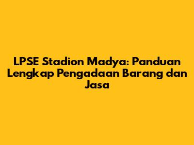 Guys, pernah denger tentang LPSE Stadion Madya? Atau mungkin lagi nyari info lengkap soal pengadaan barang dan jasa di sana? Nah, pas banget! Artikel ini bakal ngebahas tuntas semua yang perlu kalian tau tentang LPSE Stadion Madya. Kita bakal kupas mulai dari apa itu LPSE, kenapa Stadion Madya punya LPSE sendiri, sampe gimana caranya ikut pengadaan di sana. Jadi, simak terus ya!