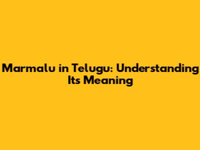 Marmalu In Telugu: Understanding Its Meaning