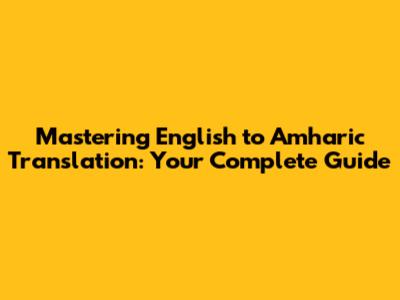 Mastering English To Amharic Translation: Your Complete Guide