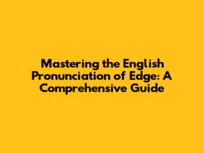 Mastering The English Pronunciation Of 'Edge': A Comprehensive Guide