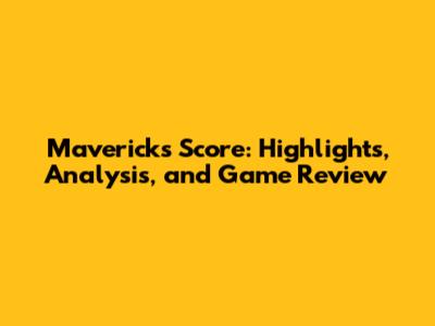 Mavericks Score: Highlights, Analysis, And Game Review