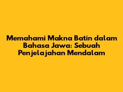 Memahami Makna Batin Dalam Bahasa Jawa
