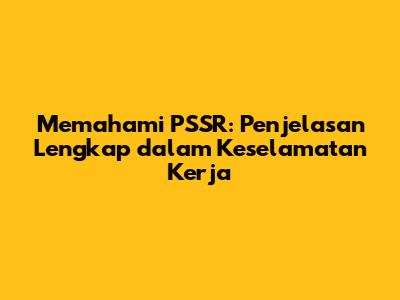 Memahami PSSR: Penjelasan Lengkap Dalam Keselamatan Kerja