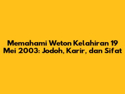 Halo, guys! Pernahkah kalian penasaran tentang arti di balik tanggal lahir kalian, terutama jika kalian lahir pada 19 Mei 2003? Tanggal ini punya keistimewaan tersendiri lho dalam tradisi weton Jawa. Nah, buat kalian yang lahir di tanggal ini atau punya teman/saudara yang lahir di sini, yuk kita kupas tuntas apa saja sih yang bisa kita pelajari dari weton kelahiran 19 Mei 2003. Kita akan bahas soal sifat, kecocokan jodoh, sampai pilihan karir yang paling pas. Siap-siap ya, info ini bakal seru dan insightful banget!