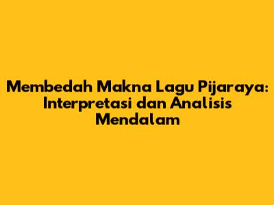 Pijaraya adalah sebuah lagu yang kaya akan makna dan emosi, seringkali mengundang pendengar untuk merenung dan menyelami kedalaman liriknya. Dalam artikel ini, kita akan mencoba menggali lebih dalam makna lagu Pijaraya, memahami pesan yang ingin disampaikan oleh pencipta lagu, serta memberikan interpretasi yang mungkin berbeda berdasarkan perspektif yang beragam. Mari kita bedah bersama-sama!