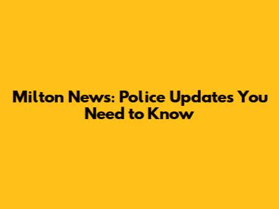 Milton News: Police Updates You Need To Know