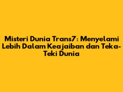 Apa Itu Misteri Dunia Trans7?