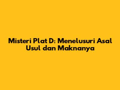 Misteri Plat D: Menelusuri Asal Usul Dan Maknanya