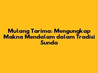 Mulang Tarima: Apa Artinya Dan Bagaimana Merayakannya?