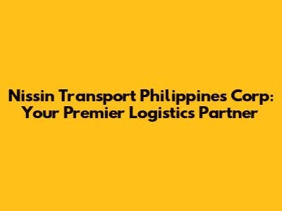 Nissin Transport Philippines Corp: Your Logistics Partner