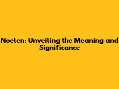 Noelen: Unveiling The Meaning And Significance