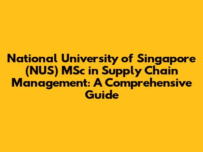 NUS MSc Supply Chain Management: A Comprehensive Guide