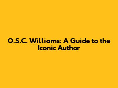 O.S.C. Williams: A Guide To The Iconic Author