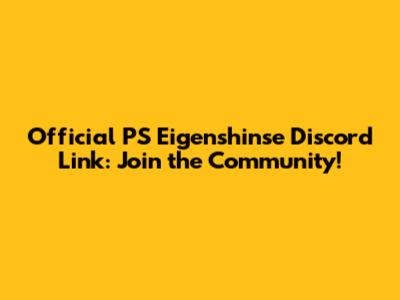 Official PS Eigenshinse Discord Link: Join The Community!