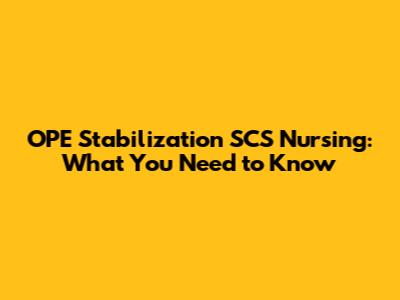 OPE Stabilization SCS Nursing: What You Need To Know