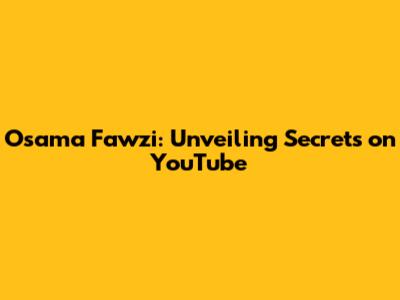 Osama Fawzi: Unveiling Secrets On YouTube