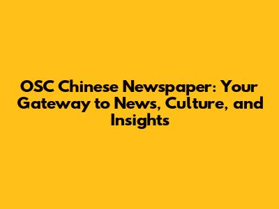 OSC Chinese Newspaper: Your Gateway To News, Culture, And Insights