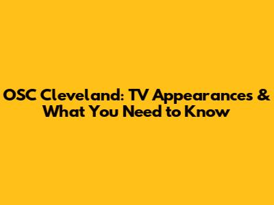 OSC Cleveland: TV Appearances & What You Need To Know