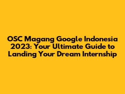 OSC Magang Google Indonesia 2023: Your Guide