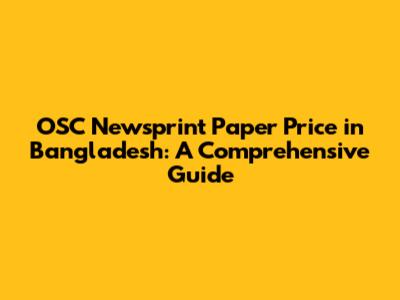 OSC Newsprint Paper Price In Bangladesh: A Comprehensive Guide