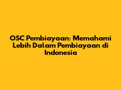 OSC Pembiayaan: Panduan Lengkap Pembiayaan Di Indonesia
