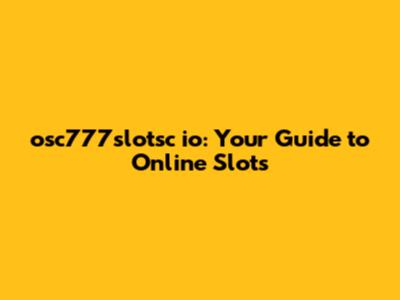 Osc777slotsc Io: Your Guide To Online Slots
