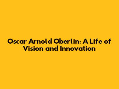 Oscar Arnold Oberlin: A Life Of Vision And Innovation