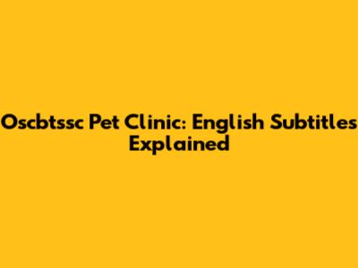 Oscbtssc Pet Clinic: English Subtitles Explained