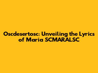 Oscdesertosc: Unveiling The Lyrics Of Maria SCMARALSC