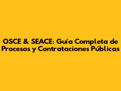 OSCE & SEACE: Guía Completa De Procesos Y Contrataciones Públicas