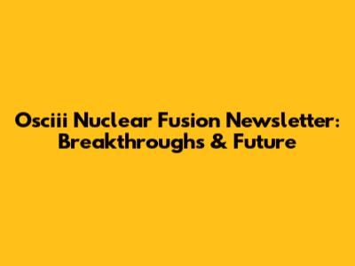 Osciii Nuclear Fusion Newsletter: Breakthroughs & Future