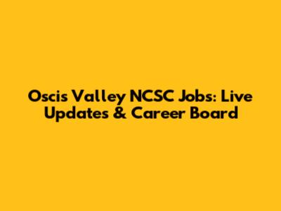 Oscis Valley NCSC Jobs: Live Updates & Career Board