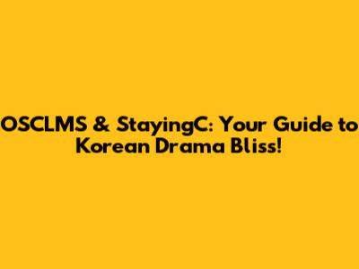 OSCLMS & StayingC: Your Guide To Korean Drama Bliss!