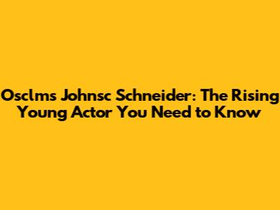 Osclms Johnsc Schneider: The Rising Young Actor You Need To Know