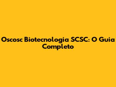 Oscosc Biotecnologia SCSC: Entenda Tudo!