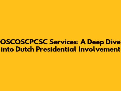 Hey guys! Let's dive into the fascinating world of OSCOSCPCSC services and their potential connection to the Presidents of the Netherlands. This topic, while seemingly niche, offers some seriously interesting angles to explore. We'll be looking at what OSCOSCPCSC actually does, how it might intersect with the Dutch political landscape, and the roles of the presidents. Get ready for a deep dive, because we're about to unpack some serious stuff.