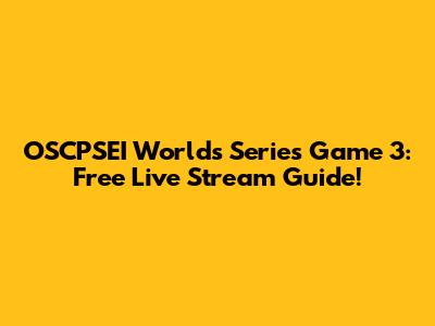 OSCPSEI Worlds Series Game 3: Free Live Stream Guide!