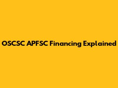 OSCSC APFSC Financing Explained