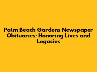 Navigating Palm Beach Gardens newspaper obituaries involves understanding where to look, what information to expect, and how to utilize available resources. Whether you prefer online platforms or traditional newspapers, finding obituaries is an essential way to honor the lives of those who have passed away and stay connected to the community. By following the tips and guidelines outlined in this article, you can effectively search for obituaries, write meaningful tributes, and appreciate the significance of these announcements in preserving legacies and fostering support during times of loss. Remember, obituaries are more than just death notices; they are celebrations of life that help us remember, honor, and connect with those who have touched our lives.