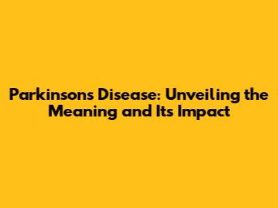 Parkinson's Disease: Understanding The Meaning And Impact