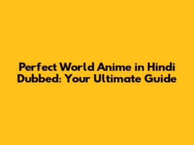 Perfect World Anime In Hindi Dubbed: Watch & Download