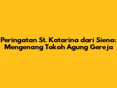 Selamat datang, teman-teman! Mari kita selami lebih dalam tentang Peringatan St. Katarina dari Siena, seorang tokoh penting dalam sejarah Gereja Katolik. Dalam artikel ini, kita akan menjelajahi kehidupan St. Katarina, menyelami makna peringatannya, dan mengapresiasi warisan abadi yang ditinggalkannya. Bersiaplah untuk terinspirasi oleh kisah hidup yang luar biasa ini!