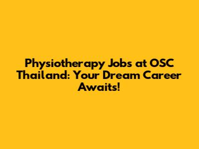 Physiotherapy Jobs At OSC Thailand: Your Dream Career Awaits!