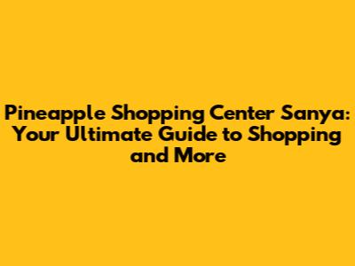 Pineapple Shopping Center Sanya: Your Ultimate Guide